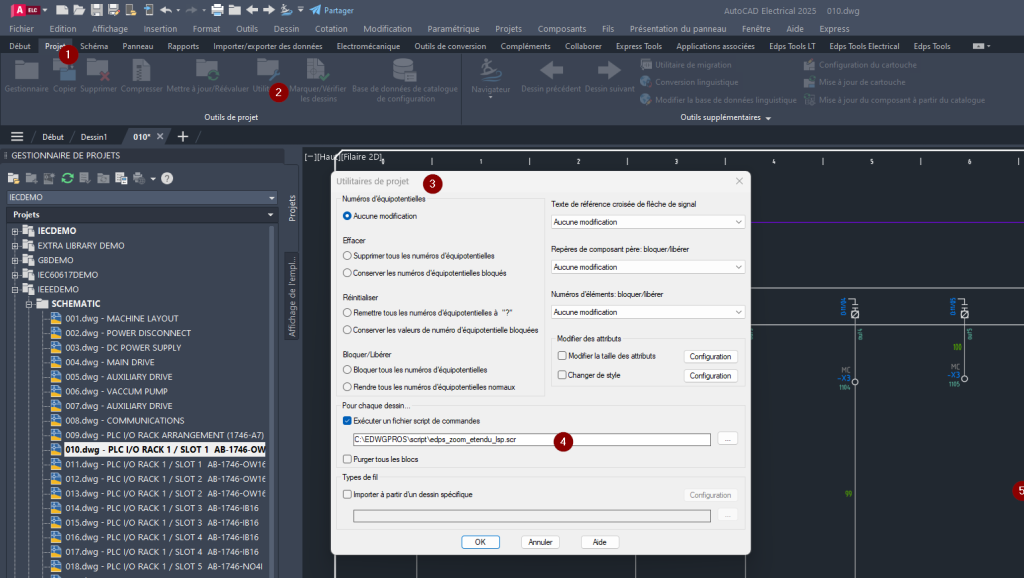- 🔁 Exécution de scripts sur plusieurs fichiers : grâce à l’utilitaire de projet, vous pouvez lancer vos scripts AutoLISP, VBA ou AutoCAD sur tout un jeu de plans en une seule opération.